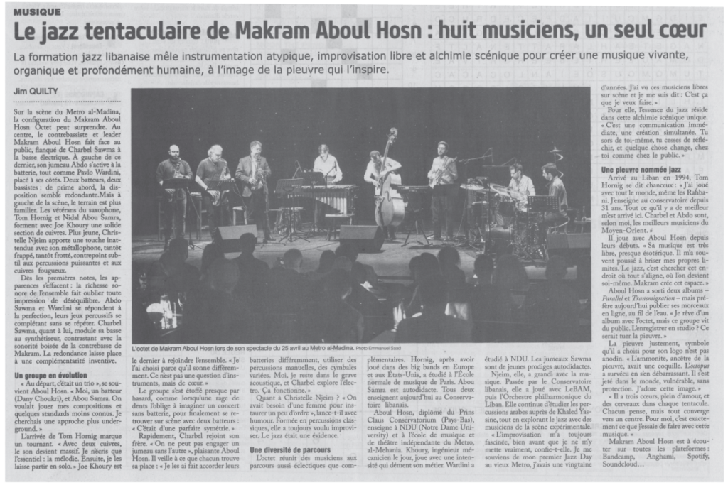 Catch The Octopus Band for the last time in February at Metro! A highly dynamic and large creative Jazz ensemble with some of Beirut’s finest musicians.