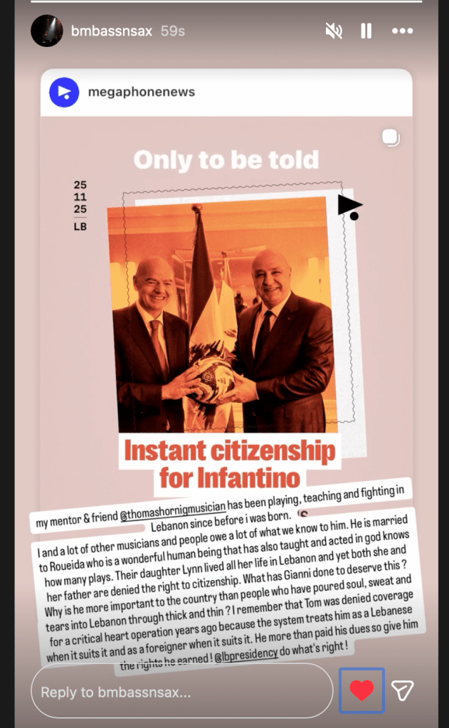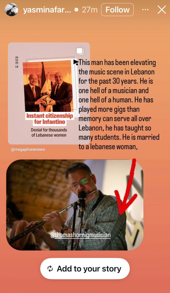 This happened when I first came to Lebanon. And I knew immediately—I could see it in the way people reacted when he was around, when we were playing together—he was the beating heart of Lebanon. I was really, really lucky to have that small moment with him. May he rest in peace.
